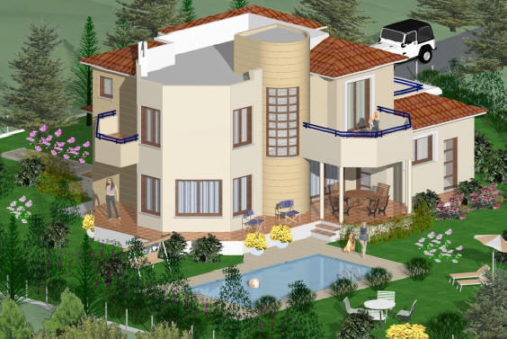 beautiful village, and covered garage. The outside of the villa is