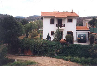 Large patio doors open onto a stone covered patio. The kitchen is fitted